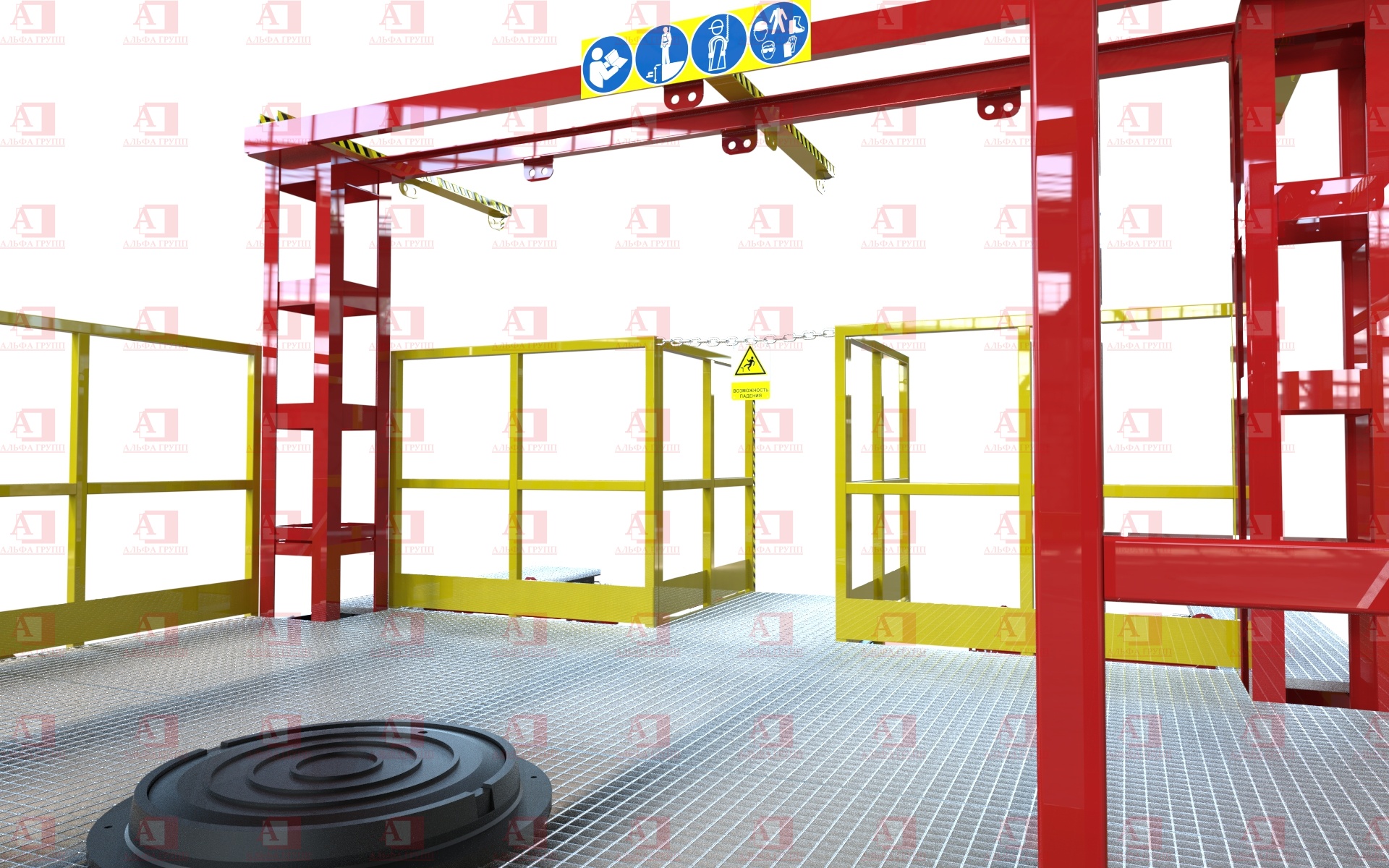 Для защиты от риска падения комплекс оснащен перилами и защитным ограждением высотой не менее 1100 мм.